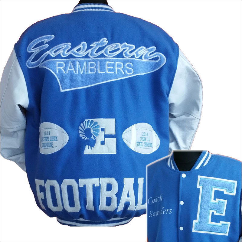 This jacket took me back to my days in Eastern Senior High school and all our Lettermen Club members would proudly wear their jackets to school and all activities. The Leather sleeves accent the wool material perfectly and the embroidery letterings is very professional. This jacket is a work of art and will be worn with pride to my School's athletic events and game day! Great doing business with WebJacket!